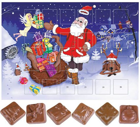 fenêtres numérotées, pré-découpées, encore fermées sur leurs trésors.